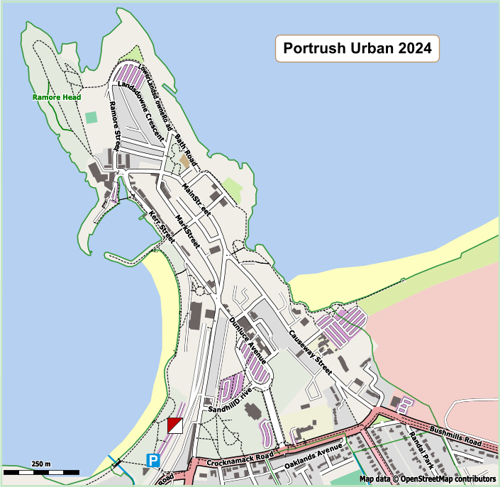 Parking will be at West Strand (free car park) accessed via an arch under the railway line off the Portstewart Road. NB this is a different car park from the East Strand Car Park used in our previous Portrush Urban Event in 2022.